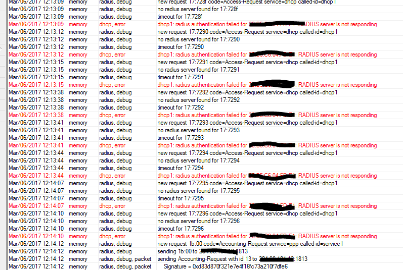 Radius server is not responding.